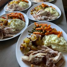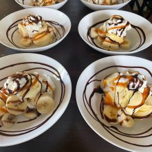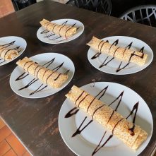 Typical meals such as a large Sunday Roast, Sausage Plait, Pork in Soy Sauce, Chicken Curry, Spaghetti Bolognaise and then some yummy puds such as Waffles with fruits and cream, Crepes, Banana Sundae, Apple Tart, all served with a beer or soft drink of your choosing.