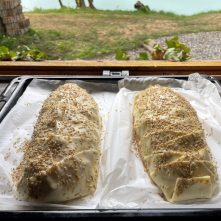 In the morning served to your swim is a huge breakfast baguette with eggs, bacon and sausage with a sauce of your choosing.